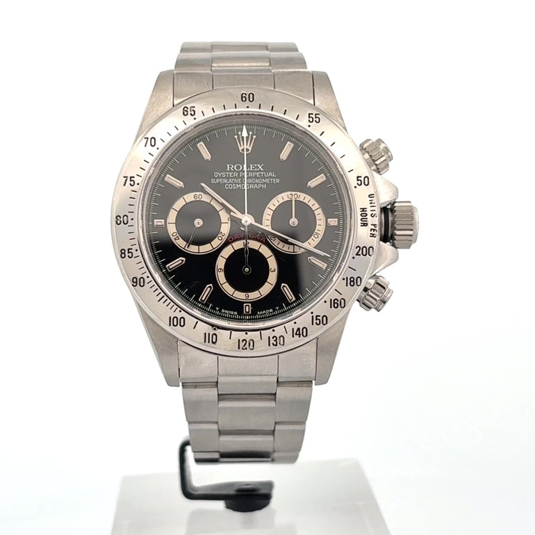 Il 1988 segna una rivoluzione totale per il cronografo più iconico al mondo: nasce il Daytona automatico. Quello che vi presentiamo non è un semplice 16520, ma un esemplare della primissima produzione, caratterizzato dalle specifiche più ricercate dai puristi del vintage moderno. Quadrante "4 Scritte": A differenza delle versioni successive, questo quadrante manca della dicitura "Officially Certified". Presenta solo quattro righe di testo sotto la corona, un dettaglio grafico essenziale che rende il layout pulito e incredibilmente raro. Ghiera Scala 200: Monta la rarissima ghiera di prima generazione con scala tachimetrica che termina a 200 unità per ora (anziché 400), un segno distintivo dei primissimi seriali R e L. Cuore Zenith El Primero: All'interno batte il leggendario calibro 4030, derivato dal movimento Zenith El Primero e modificato da Rolex per garantire affidabilità e precisione cronometrica senza pari. Service Ufficiale Rolex. Mai LucidatoOrologio controllato e garantito sia nel corretto funzionamento che nella lecita provenienza da Ferrari Luca Gioielli di Padova.
